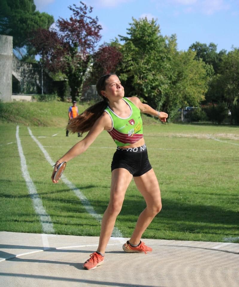 Au disque d’abord, Maitena Gutierrez lance à 24m92 et Capucine Pena 20m61 pour sa première compétition au disque 1kg.