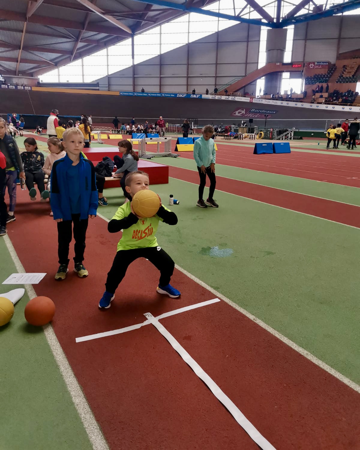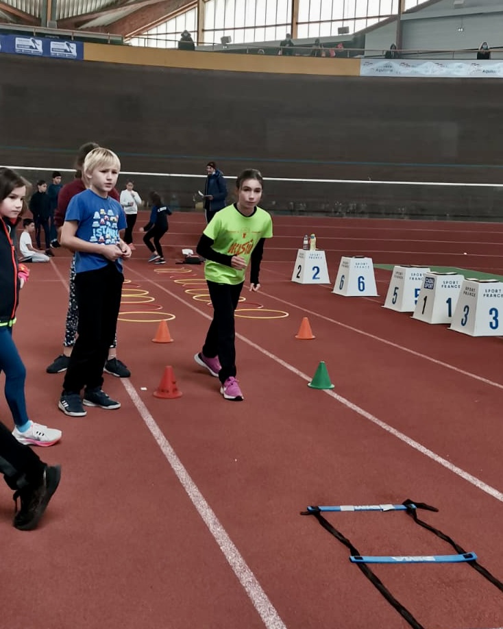 Dans un premier temps, ce sont les poussins qui samedi, ont pris possession du stadium de Bordeaux Lac. Une soixante d’enfants ont pris part à la poussinade organisée par le comité de Gironde. Cet évènement était le premier en salle depuis deux ans, les sourires étaient donc au rendez-vous. Les enfants ont pu s’amuser et évaluer leurs progrès sur les ateliers de courses, de sauts et de lancers.