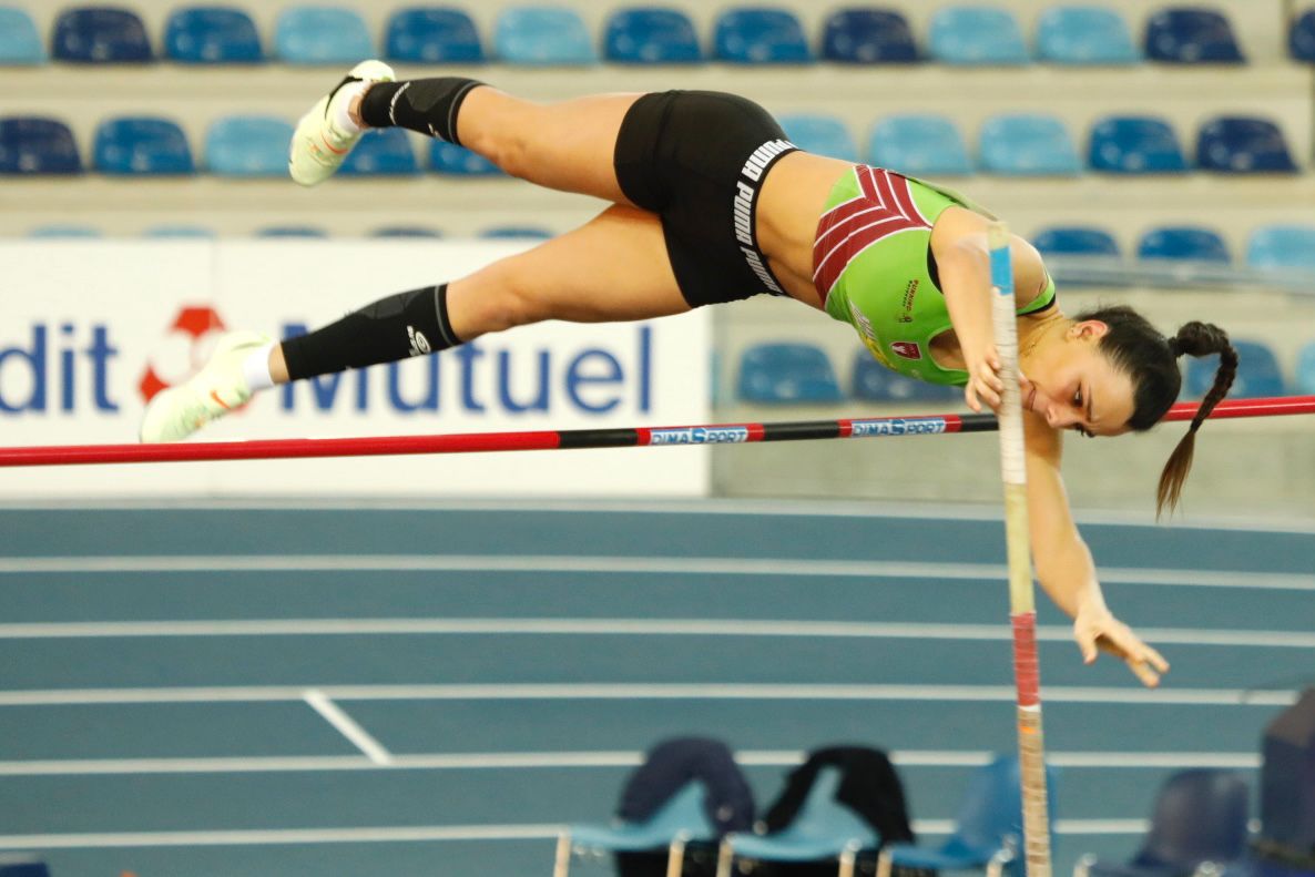 Lalie COIQUAUD, notre perchiste, franchit une barre à 3m55 (N4), frôlant de près son record personnel (3m56).