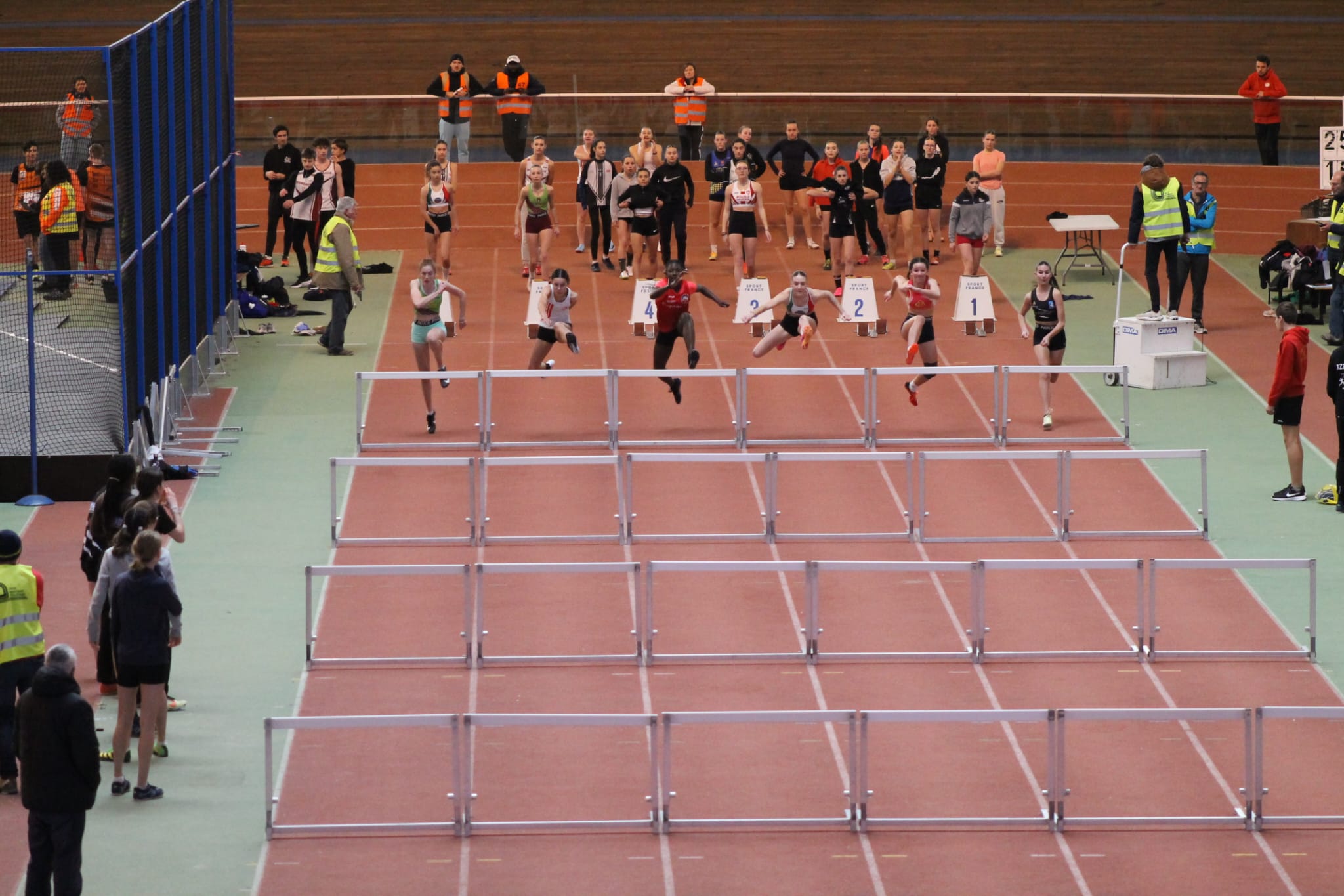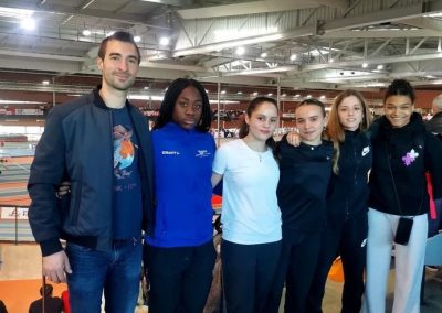 Au 60m haies, nos deux cadettes Axelle ESTEVEZ et Luna FIEDLER améliorent chacune leur chrono. Axelle finit 4e de ce Championnat avec 8’’69 (N3). Luna pour sa part réalise 8’’66 (N3) en demie-finale et finit 7e en finale. Félicitations à ces deux jeunes filles qui n’ont cessé de nous impressionner cette saison !