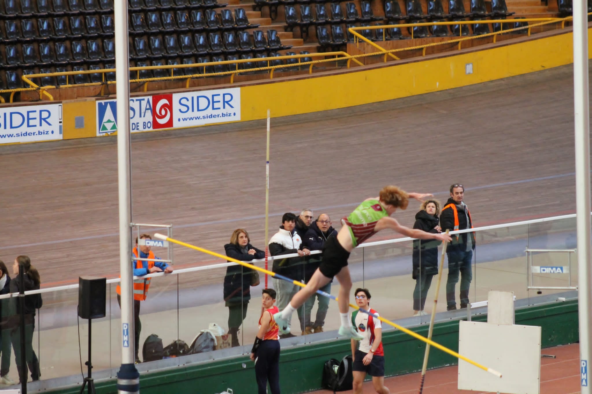 Danik KOVANOV s’élève à 4m55 (IR2) à la perche junior, le jeune homme nous a fait une belle frayeur en chutant lors de son concours, il s’en sort heureusement indemne.
