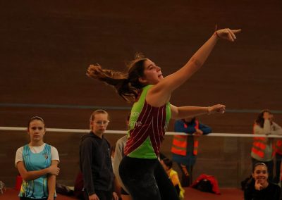 Teana Molinari remporte aisément le poids à 9m86 (34 points) avec plus d’un mètre d’avance sur la 2e ! Jolie concours de longueur également où elle saute 4m37 (27 points). Finalement, elle totalise 84 points au triathlon et est 6e des 2009.
