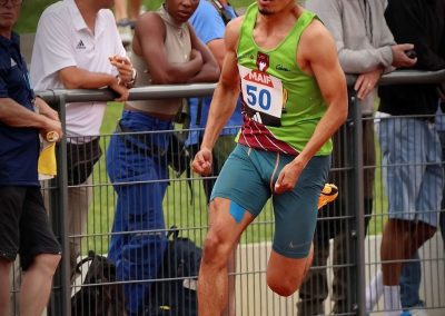 Sur le 100m féminin, trois de nos athlètes étaient alignées, Claire DUBRANA qui réalise son nouveau record personnel en série, en 11 »99 (espoir – N3), Naomi RISKWAIT qui court en 12 »08 (espoir – N4), toute les deux se qualifiants pour les en demi-finales, Celia BARLE court en 12 »65 (espoir – IR3), en série. Chez les hommes, Hugo CERRA réalise en série en 10 »76 (espoir – N3) et se qualifie également pour la demi-finale.