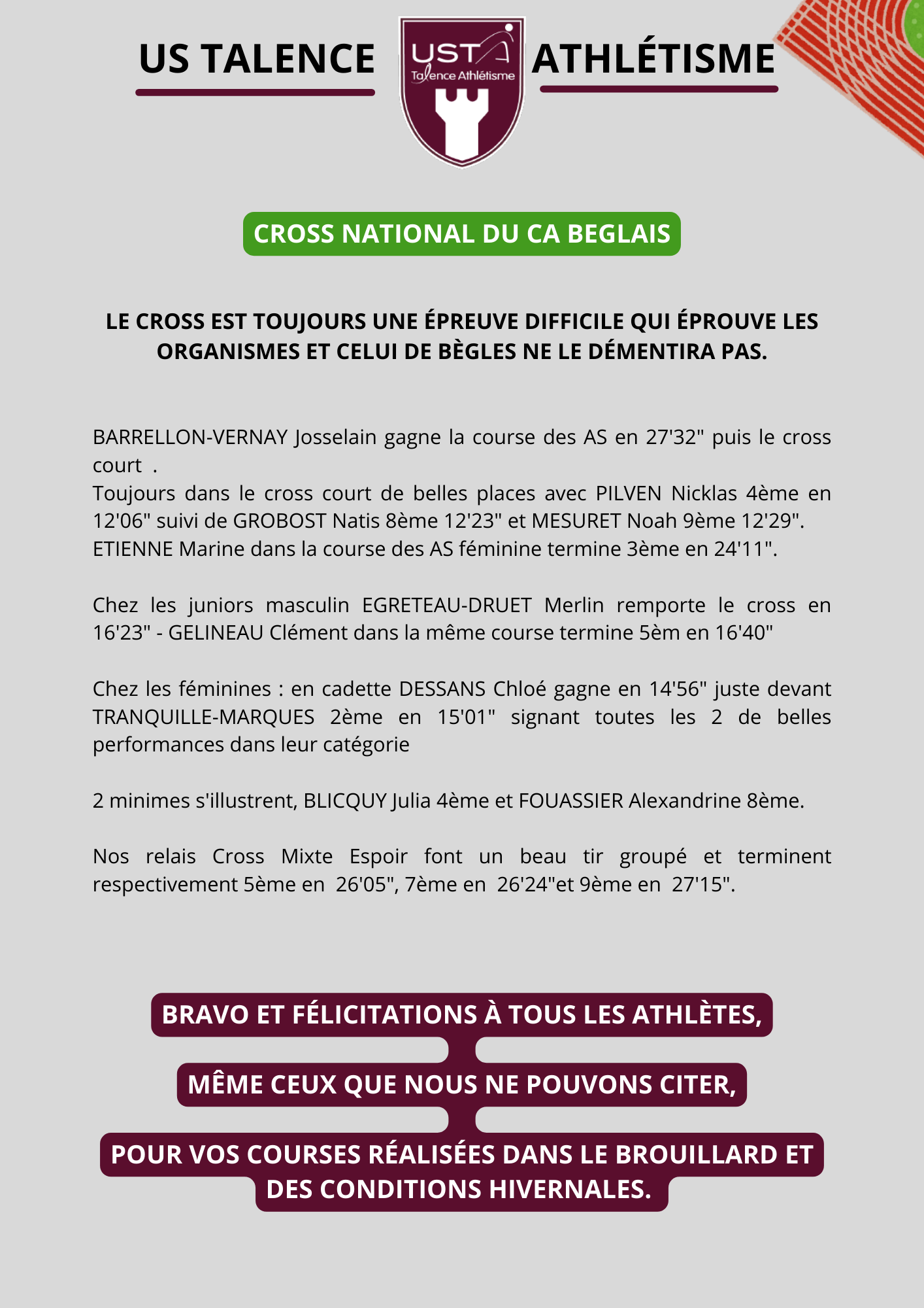 • BORDEAUX OU LIMOGES, NOS ATHLETES TOUTES CATEGORIES ASSURENT