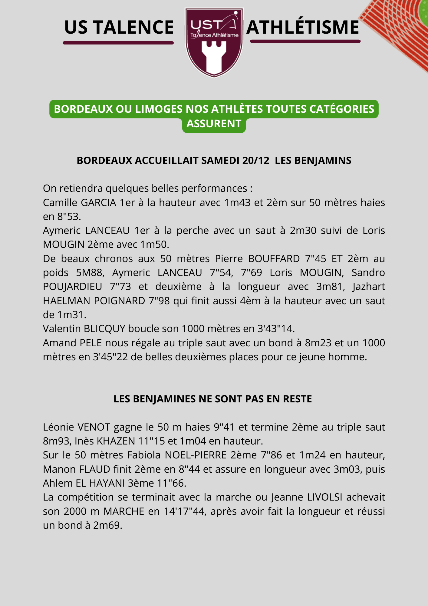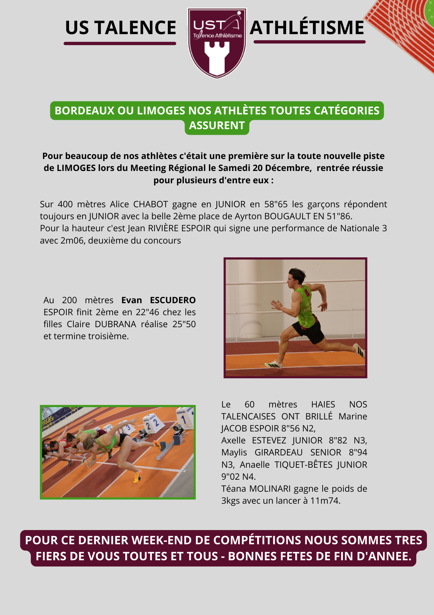 • BORDEAUX OU LIMOGES, NOS ATHLETES TOUTES CATEGORIES ASSURENT